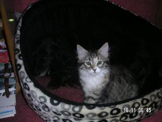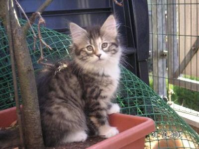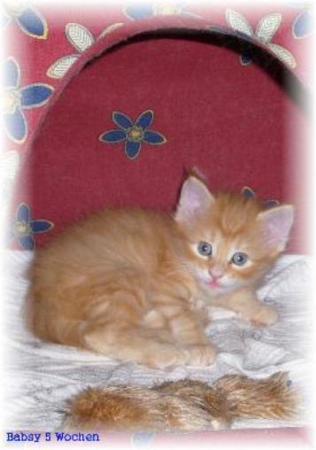Babsy ist ein sehr aufgewecktes und neugieriges Kitten. Sehr verspielt und überall dabei. Sie ist super schnell und klettert wie ein Äffchen. Sie hat XXL Pinsel ein schönes Profil und Kinn und einen sehr langen Schwanz. | |  | |