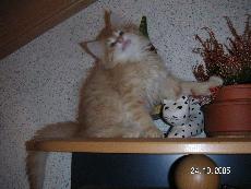 Am 27.11.05 in Essen-Kettwig: V1, Sonderpreis, nominiert Best in Show. Apollo hat ein exellentes gerades Profil und ist ein jetzt schon sehr großer kräftiger vielversprechender Kater. Am 12.03.06 in Duisburg Meiderich : CACJ, Sonderpreis und nominiert Best in Show. | Apollo wiegt mit 7 Monaten 4,8 kg.